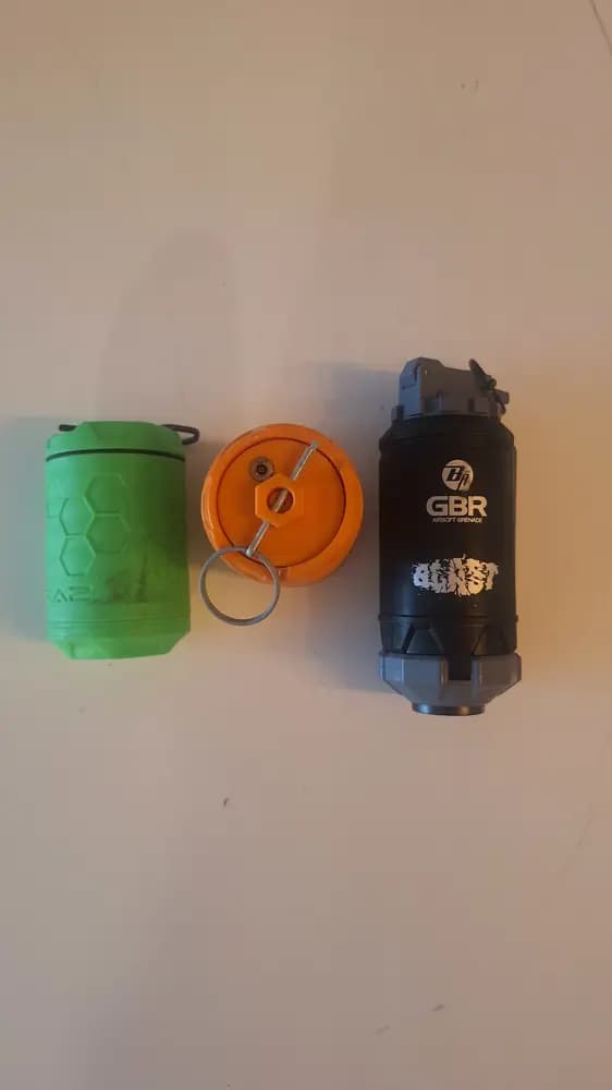3 st granater2 st gasgranater. Lätta att använda. Kan behövas O-ringsbyte då dom inte använts sedan 2023. 1 st fjädergranat från novritch.