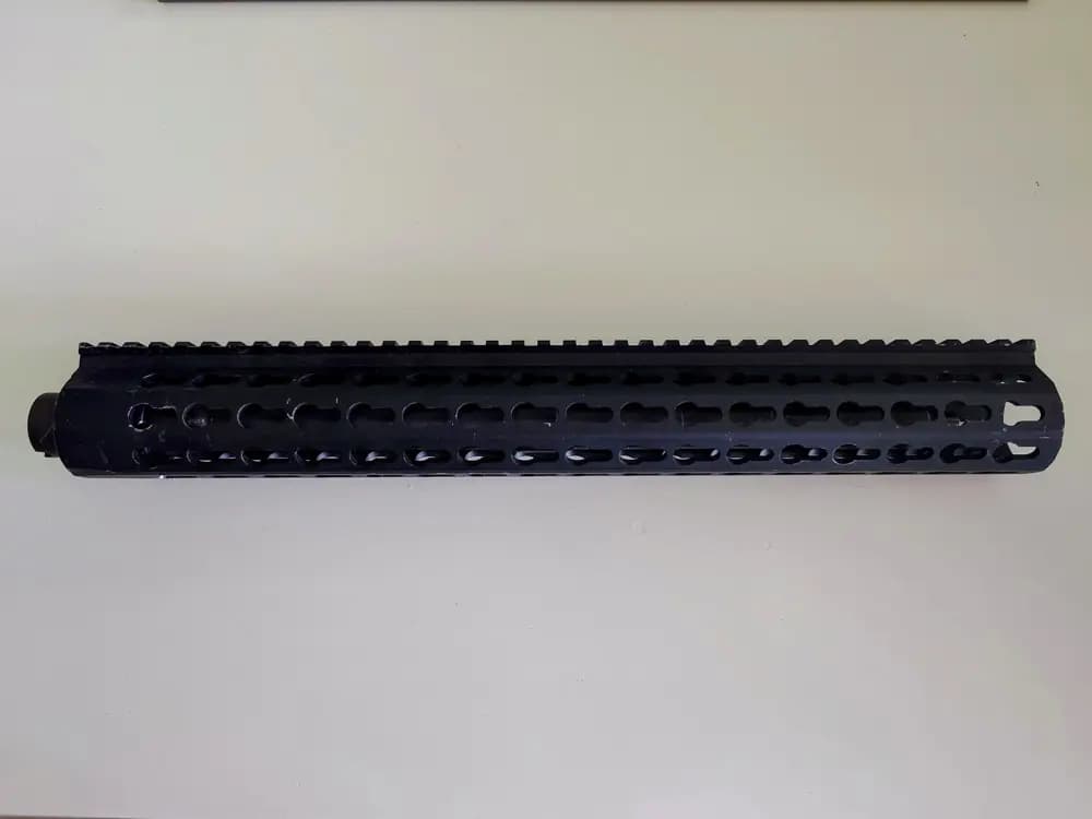 Inte på det klara vilken tillverkare det är på dessa grejer samt att jag har svårt att identifiera railen men Google antyder att det är en URX variant men jag vetefan. Pipa, handguard/railen samt barrelnut är det som finns.