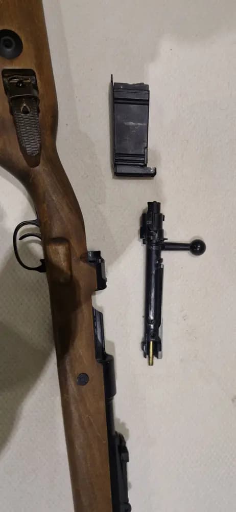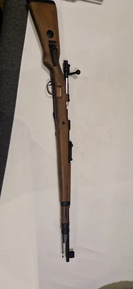 En PPS K98 jag köpte några år sen, med tillköpt slinga också. Den kommer med 3 magasin, men dock är 2 av dom sönder just nu. Riktigt rolig bössa att spela med, och den skjuter väldigt bra