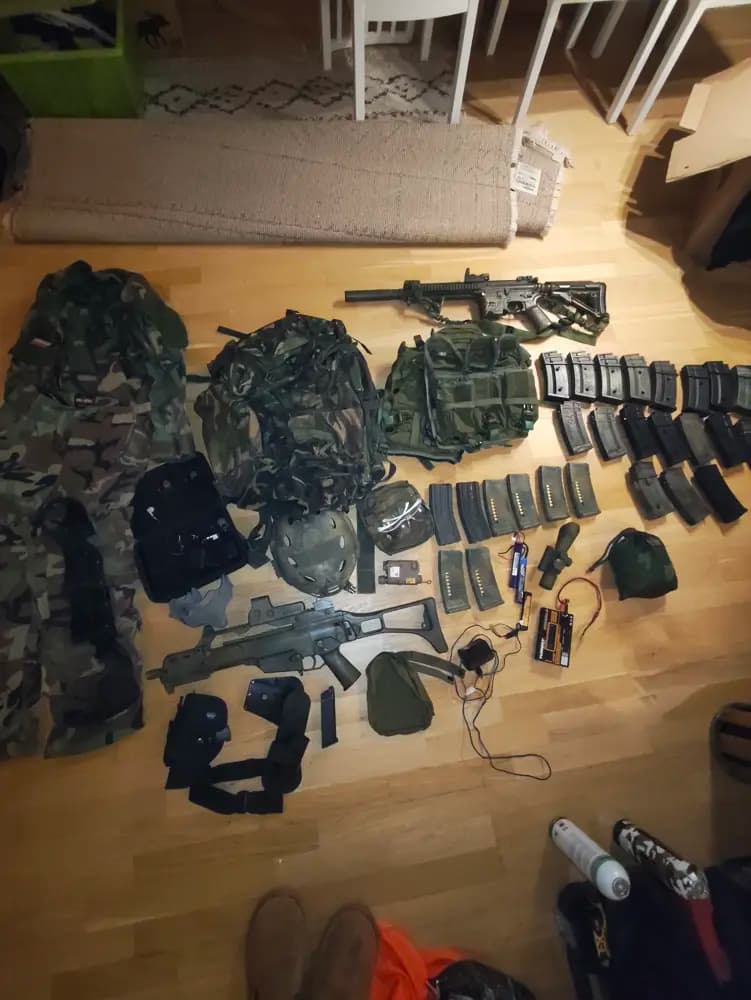 Säljer allt tillsammans då jag slutade med asg för några år sedan. Bland annat M4, G36, ryggsäck, väst med fickor, kläder M, laddare x2, ett par eklare komradio, hjälm, ansiktsskydd x2, många olika magasin, hölster, kollimator x2, sökare, tjock bälte reservdelar mm.