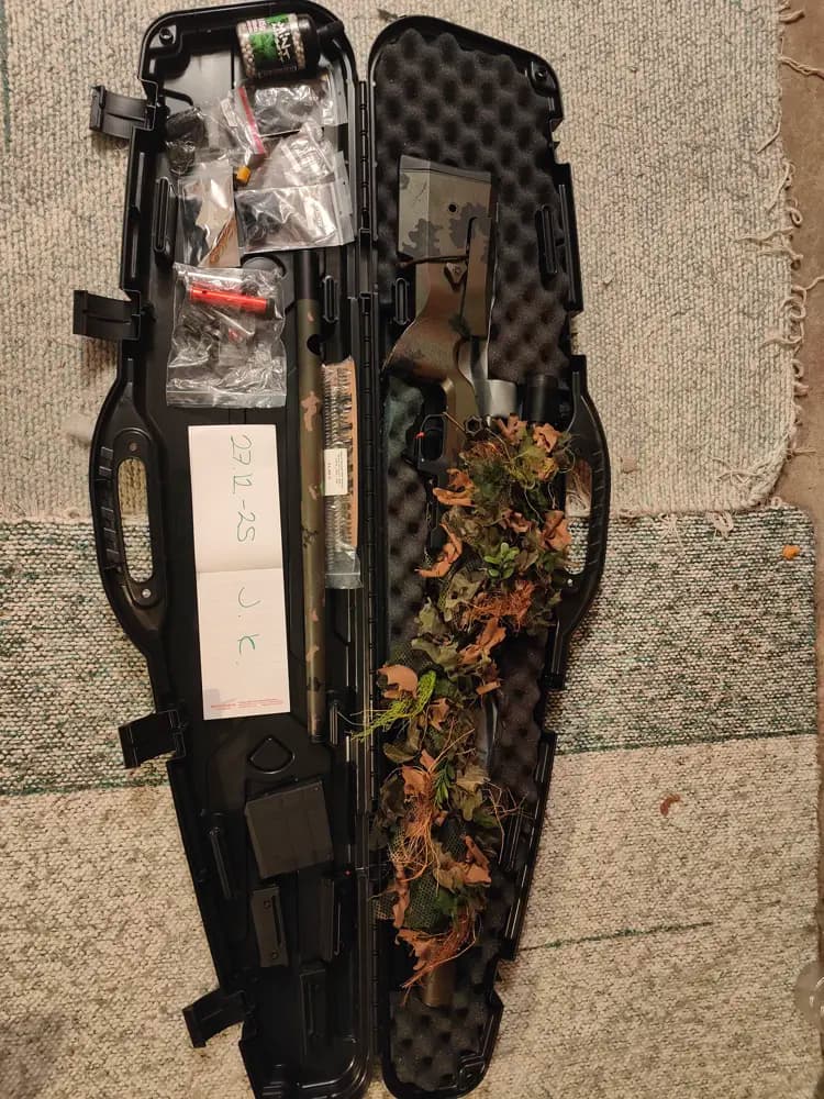 Now selling extremely quiet Silverback TAC-41!Inside is Stalker piston, hop-up and also innerballer which brand I cannot remember. Everything in the picture is included; scope, extra magazines, springs, hop-up parts, longer outer barrel and also jar of BB's (0.45). Shooting around 2.5 joules currently. I personally don't have interest playing with this anymore which is why I'm selling it.
