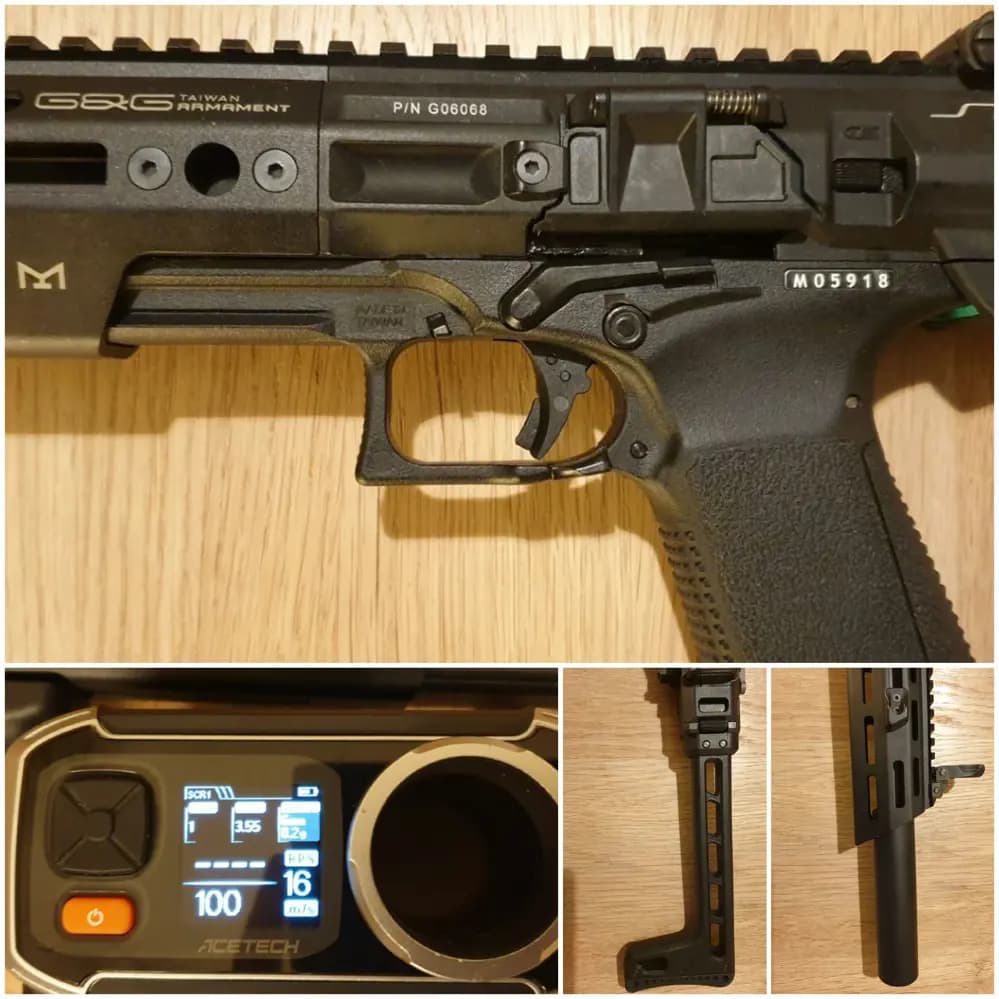 Den är lätt och smidig, har fällbart axelstöd, ligger på precis 1,0joule / 100m/s med nyfylld greengas från protech.