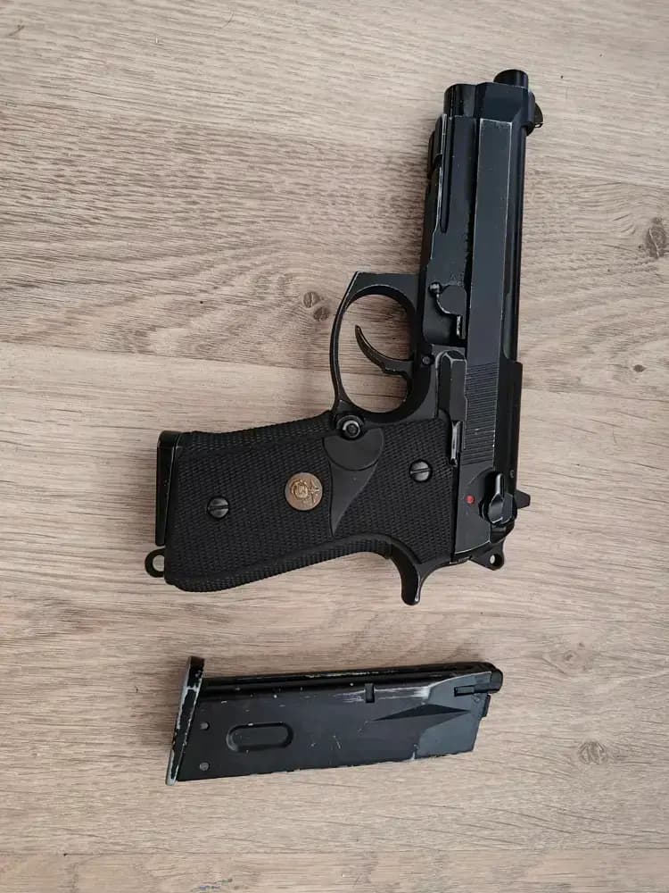 Letar efter en WE M9 Marine Version, svart. Se bild: har gummigrepp.