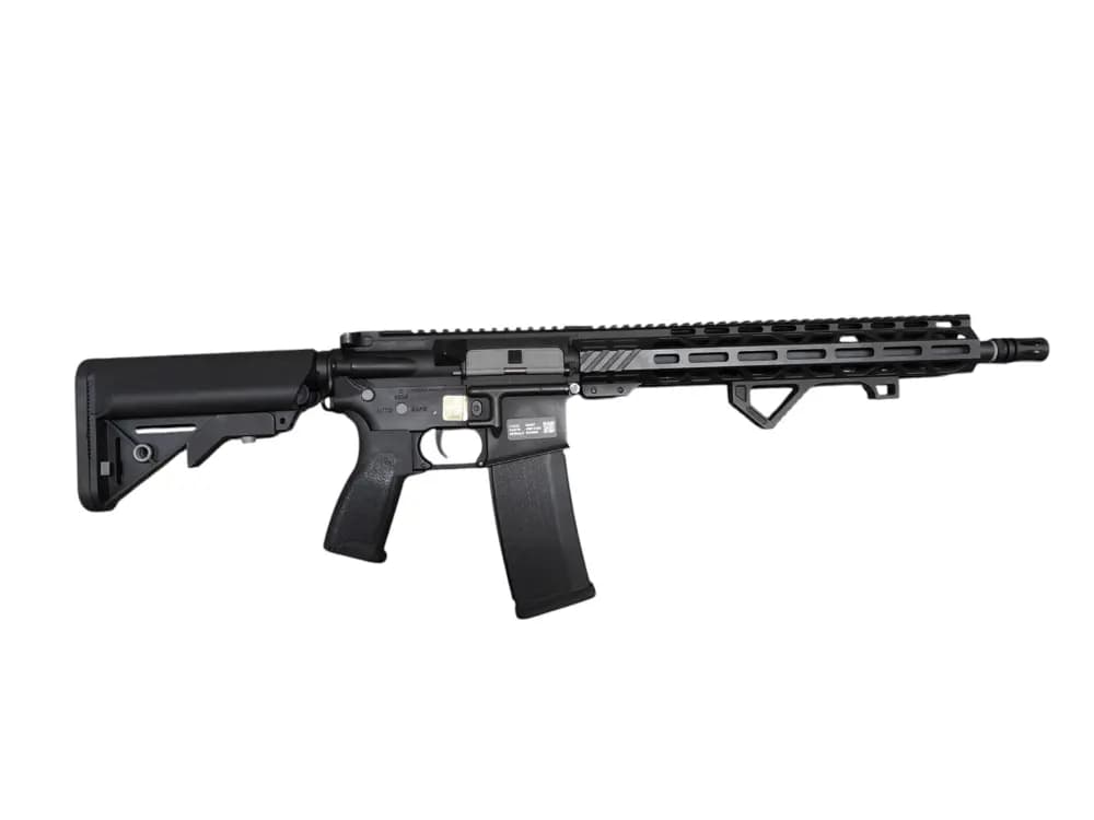 Specna Arms SA-E24 EDGE™ med handguard samt reciver i metall.Quick spring exchange samt Gate X-ASR ETU.Medföljande tillbehör :Angled fore gripEtt midcapTamiya till deans adapterIron sightsIngen laddare eller batteri medföljer.