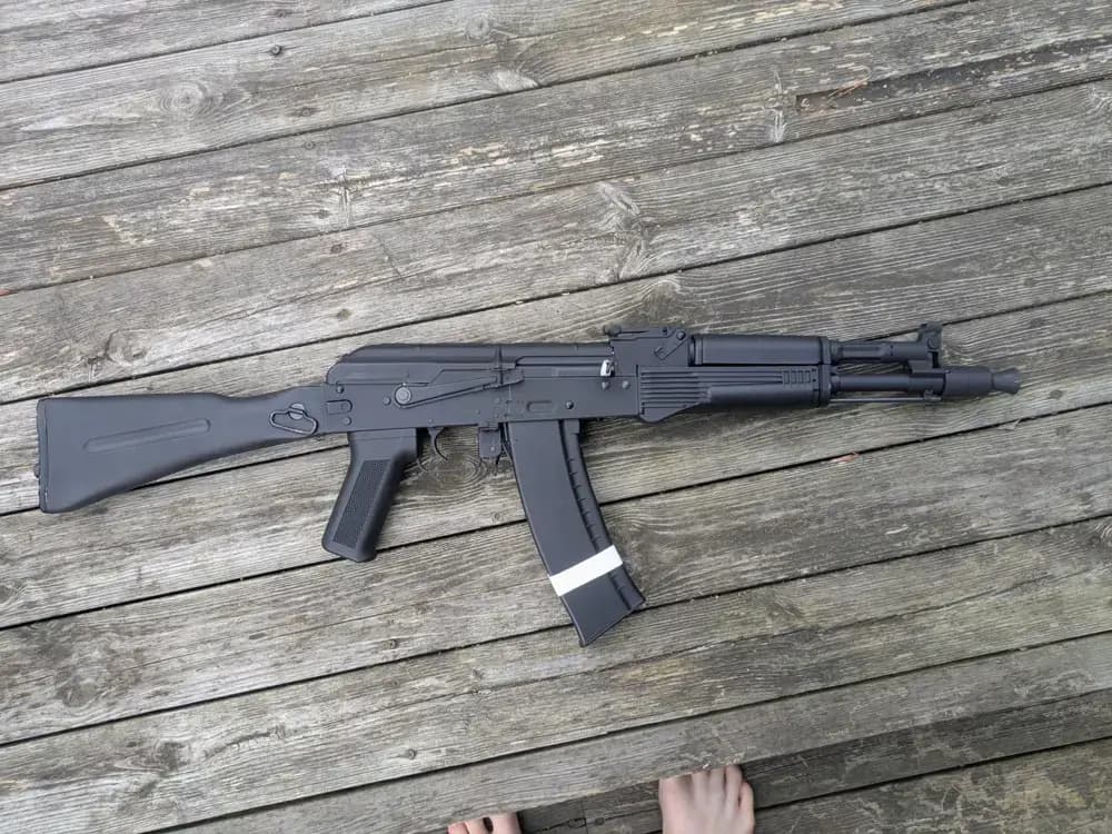 Säljer nu min S&T då jag vill ha någon annan platform. Köpte den i början av sommaren och har funkat fint. Ak 105 är en nerkortad version av AK74M vilket gör den perfekt för de kortare stridsavstånden som är vanliga för airsoft. Har en sido rail för att fästa olika sikten/rails. 4 magasin ingår(3 mid-cap och en high-cap), kan också sicka med en vapen räm om det är något som hade kunnat vara hjälpsamt. Byten är intressanta främst gbb.