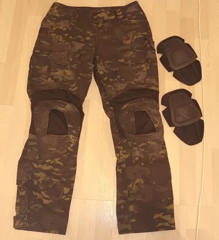 Säljer ett par Idogear stridsbyxor i svart multicamo, storlek 32 tum runt midjan. Har använt dem en hel del men bara 1 år ungefär. Massa fickor finns. Stretch zoner finns. Knäskydd finns. Slittåliga och snygga.