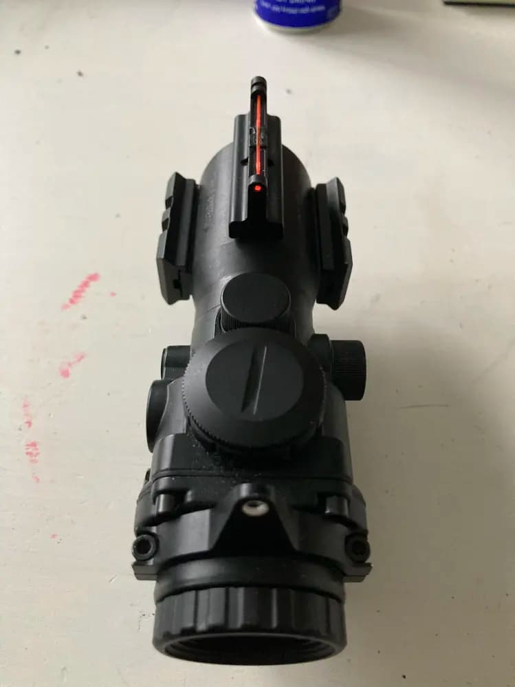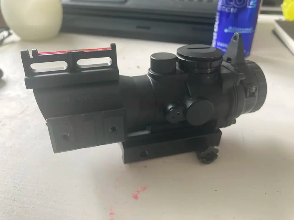 Strike Systems ACOG kopia. Belyst med 4x32 förstoring. Nypris runt 2300kr. Funkar som det ska, saknar främre skruv, sitter dock som berget med bara en skruv. Finns att hämta i Mullsjö. Kan ev. tas med till Tidaholm. Kan även skickas om så önskas.