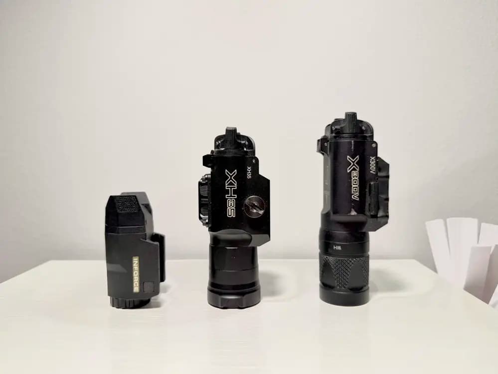 Surefire X300V - 399krSurefire XH35 - 399krInforce APLc - 299krAlla lampor har fast sken samt strobe funktionDe tar CR123 (ingår ej)Fungerar felfritt,har bara suttit på som dekoration och har aldrig använts i spel eller liknande. Ta alla 3 för 900kr