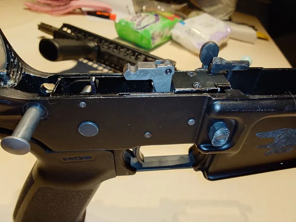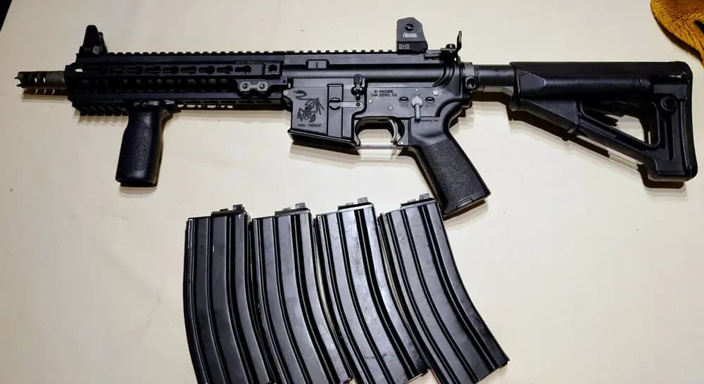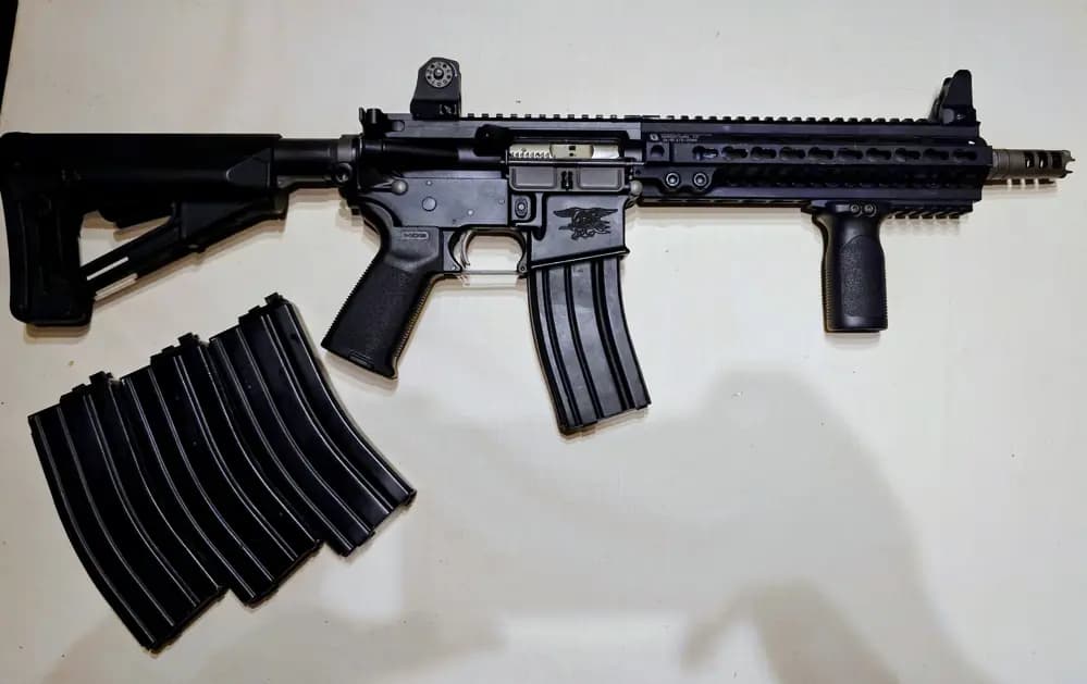 Den har också en Ra-tech triggerbox och ra tech stål boltcarrier. 4 magasin som håller tätt och funkar med boltcatch. Nozzle är ny. VFC bufferfjäder, H0 Buffer