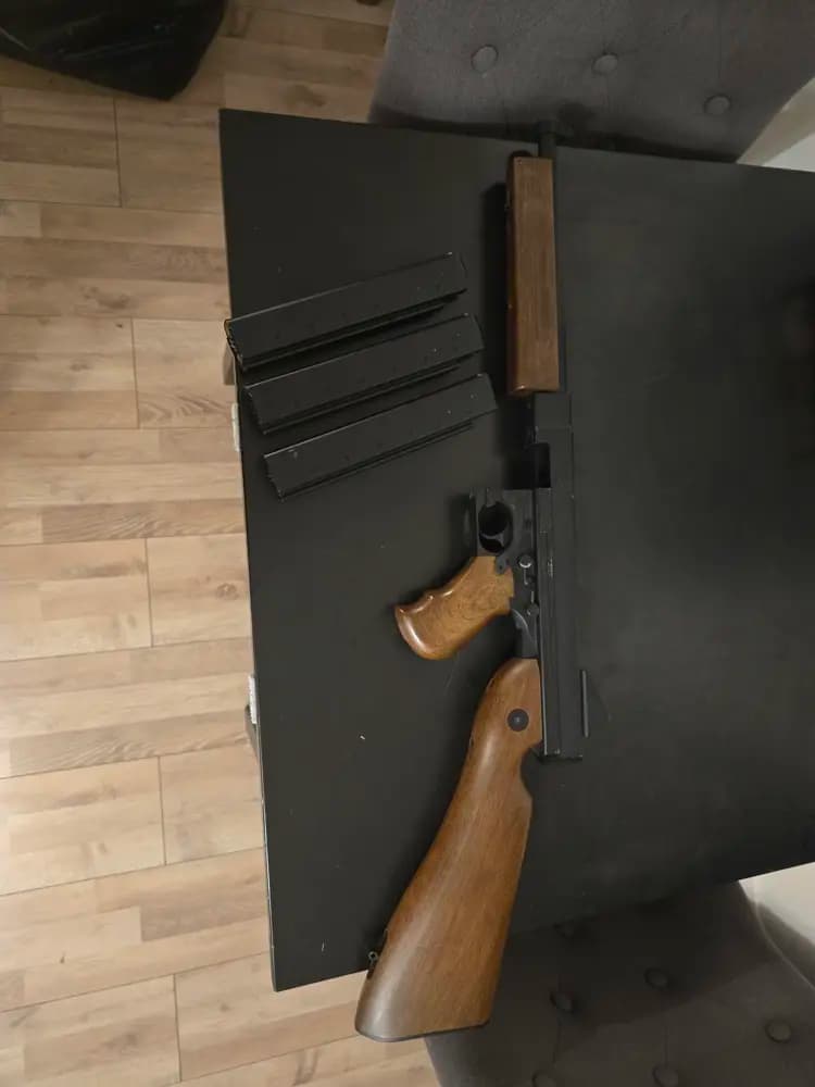 Säljer en thompson full metall 3 st hi cap magasin. Som ny går jävligt bra. märke vet ej