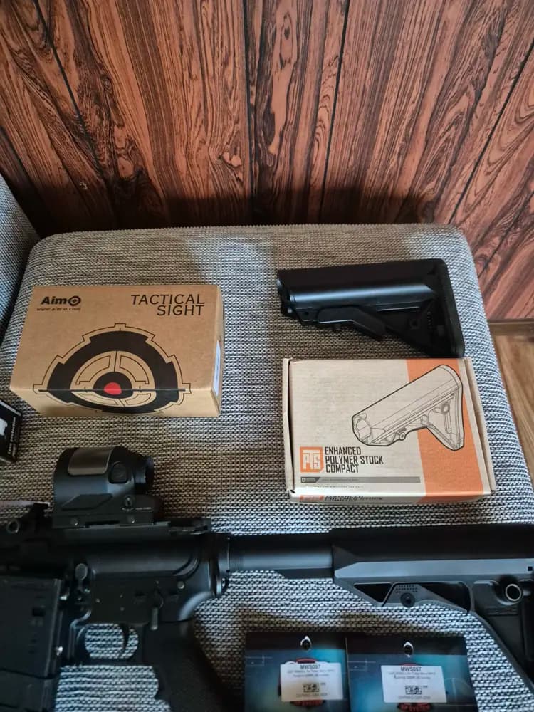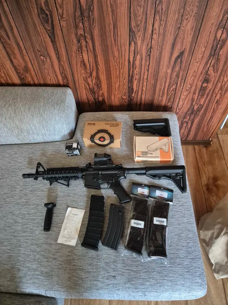 Det är en oanvänd tokyo mauri m4a1.Köpte den 2023 men då jag alldrig använt den säljer jag den det med följer massa saker så som Annat grip, extra magasin (3st) 4 med original, red dot sikte, adjustable stock, och siktes skyddInköpt för 15600kr