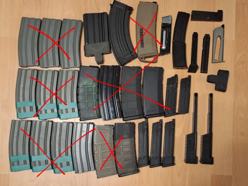 Diverse olika magasin. Tror att ens är till en mws. Nån till Asg Shadow. Resten vet jag inte.Har flera annonser, köp gärna flera😉Grejerna säljes generellt inte styckesvis men om det verkligen är något enskilt du behöver går det kanske att lösa.Sammlingen har legat i källaren länge och har ingen aning om vad som funkar och inte. Förvänta dig för mycket så blir du inte besviken.Byten kan vara intressant. Airsoft relaterade, m4 aeg, gbbp exempelvis.Kan postas om du är villig att stå för frakten och betala innan det skickas.