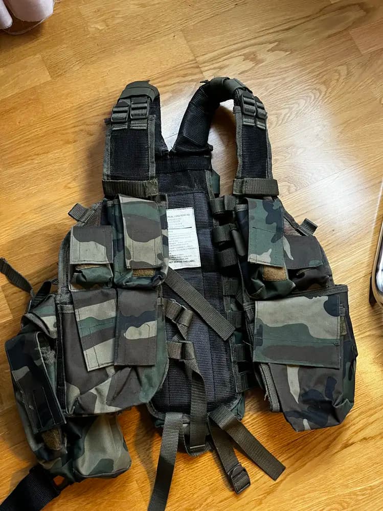 Denna väst var en frånbörjan en camelbak väst men vattenbehållaren är borta. Jag hade min HPA tank där istället.Mängder med fickor på den.Kan skickas, köpare står för frakten.Ansvarar ej för postens slarv!