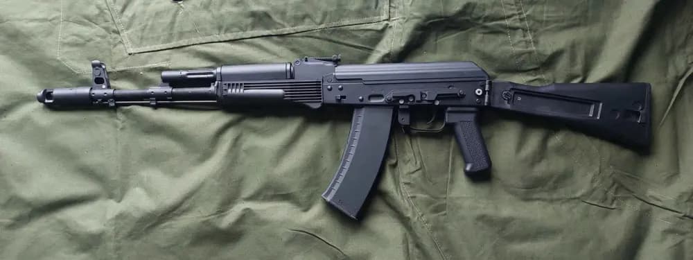 Släpper denna batch 1 VFC AK74M då jag vill göra rum för en framtida VFC AKM. Medföljer gör ett tätt, svart magasin. Har inte skjutit mycket med bössan, men den skjuter fint. Skulle dock rekommendera att man sätter i en något starkare rekylfjäder, då den nuvarande har svårt att trycka fram slutstycket hela vägen om man skjuter rakt upp. Detta var inget problem när jag provade med den något starkare fjädern som kom med VFCs AKS-74U. Har lite skramor på slutstycket där bara den på sidan syns när bössan är ihopplockad.