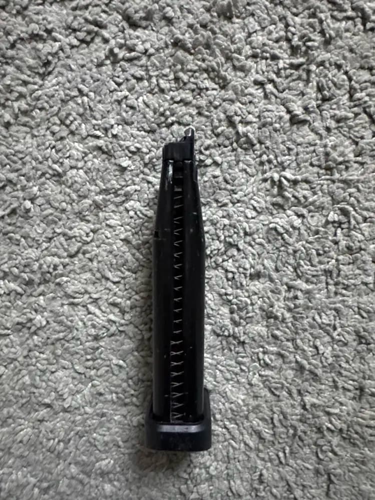 Säljer nu en mycket fin airsoft pistol som endast skjutits två gånger och därefter varit ett samlarobjekt.Pistolen är inköpt hos rödastjärnan för 2000kr och är i gott skick. Magasinet till pistolen behöver däremot bytas eftersom matartanden är halvt avkapad pga magasinet tappades i stengolv.En mycket fin pistol med rejäl rekyl och goda skjutegenskaper.Hör av er för fler frågor eller bilder.Hälsningar,Tim