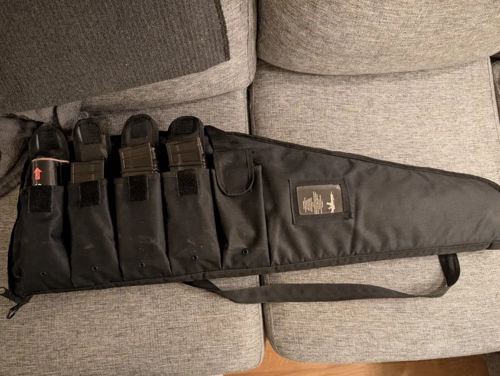 Gas gevär med 3 magasin (magasin läcker) samt väska och kikarsikte från Kyoba. Lampa under pipen.