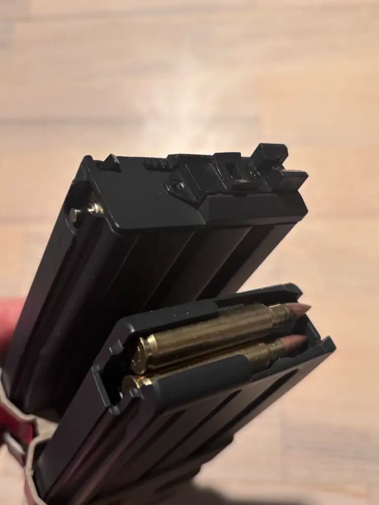 We Scar L GBBR 80 bb magazine. Gas magasin för we scar L open bolt. Har plats för 80bb. "metal gas magazine for WE weapons. It's suitable for M4, HK 416, SCAR L, L85... Compatible with OPEN BOLT only. This magazine is coupled and it imitates two standard magazines connected by a clamp"